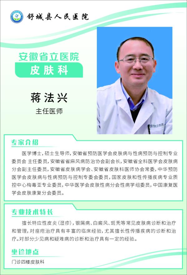 11月1日上午?皮膚科專(zhuān)家蔣法興坐診