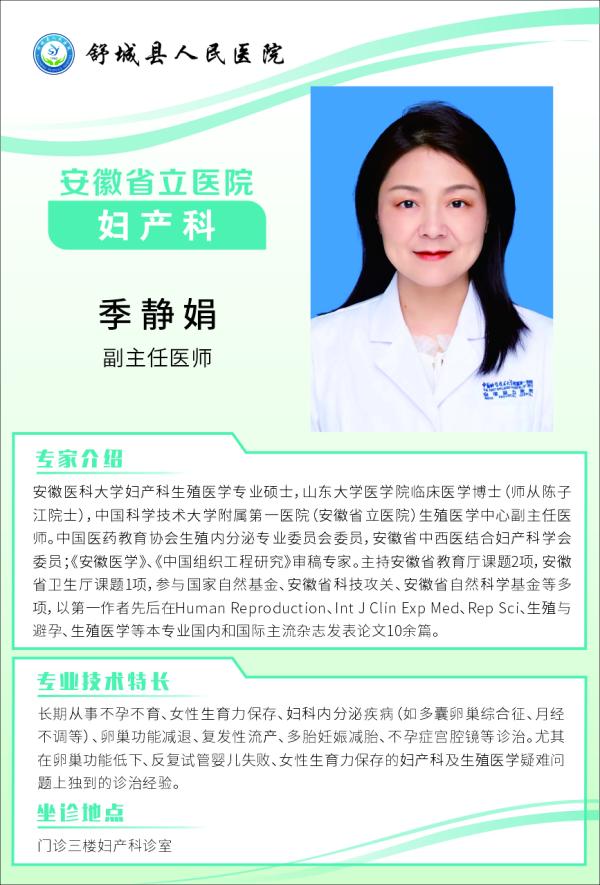 11月1日上午 婦產(chǎn)科(生殖與孕前檢查)專(zhuān)家季靜娟坐診