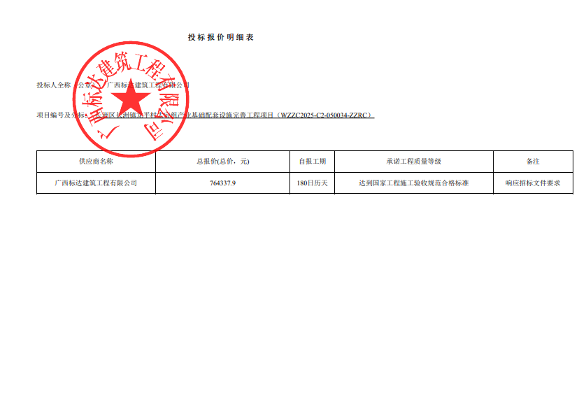 1 | 總報價(jià):764337.9(元) | ******有限公司 | 梧州市長(cháng)洲區長(cháng)洲鎮寺沖村洲崗一組8號 |