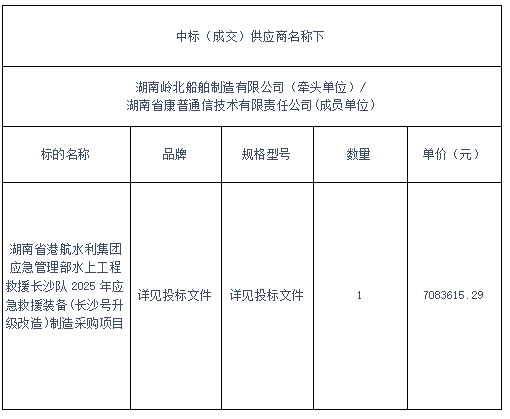 ******集團應(yīng)急管理部水上工程救援長沙隊2025年應(yīng)急救援裝備(長沙號升級改造)制造采購項目