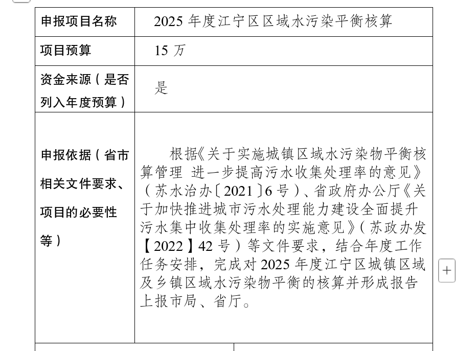 | 信息名稱: ? | ?2025年度江寧區(qū)區(qū)域水污染平衡核算項(xiàng)目意向公示 | ||