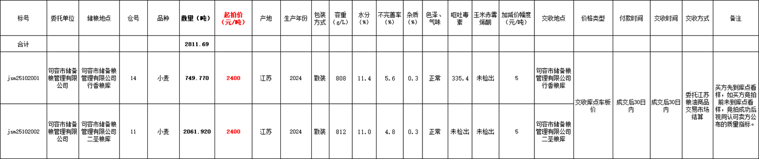 受******有限公司委托,江蘇糧油商品交易市場(chǎng)舉辦本次地方小麥競價(jià)銷(xiāo)售交易活動(dòng)。具體事宜公告如下: